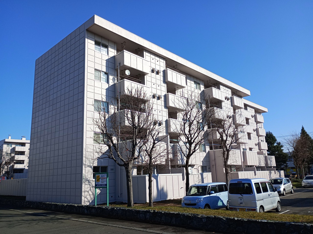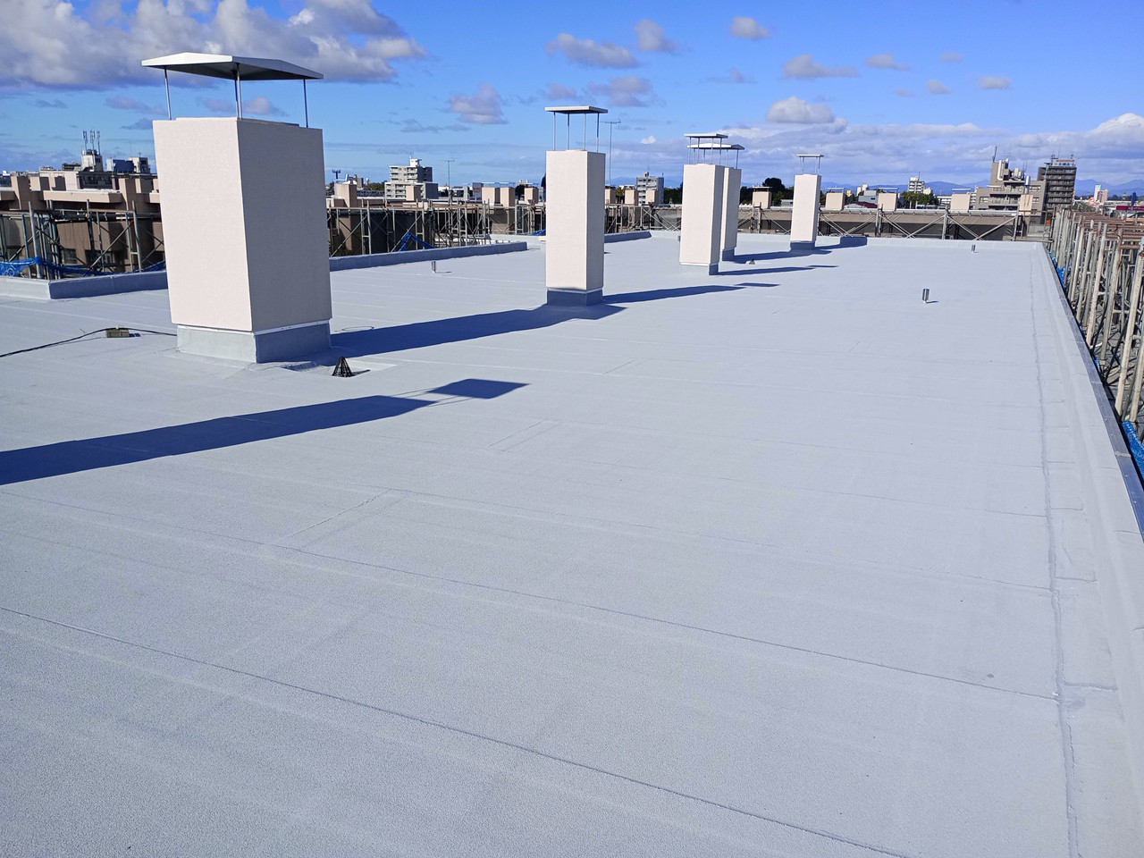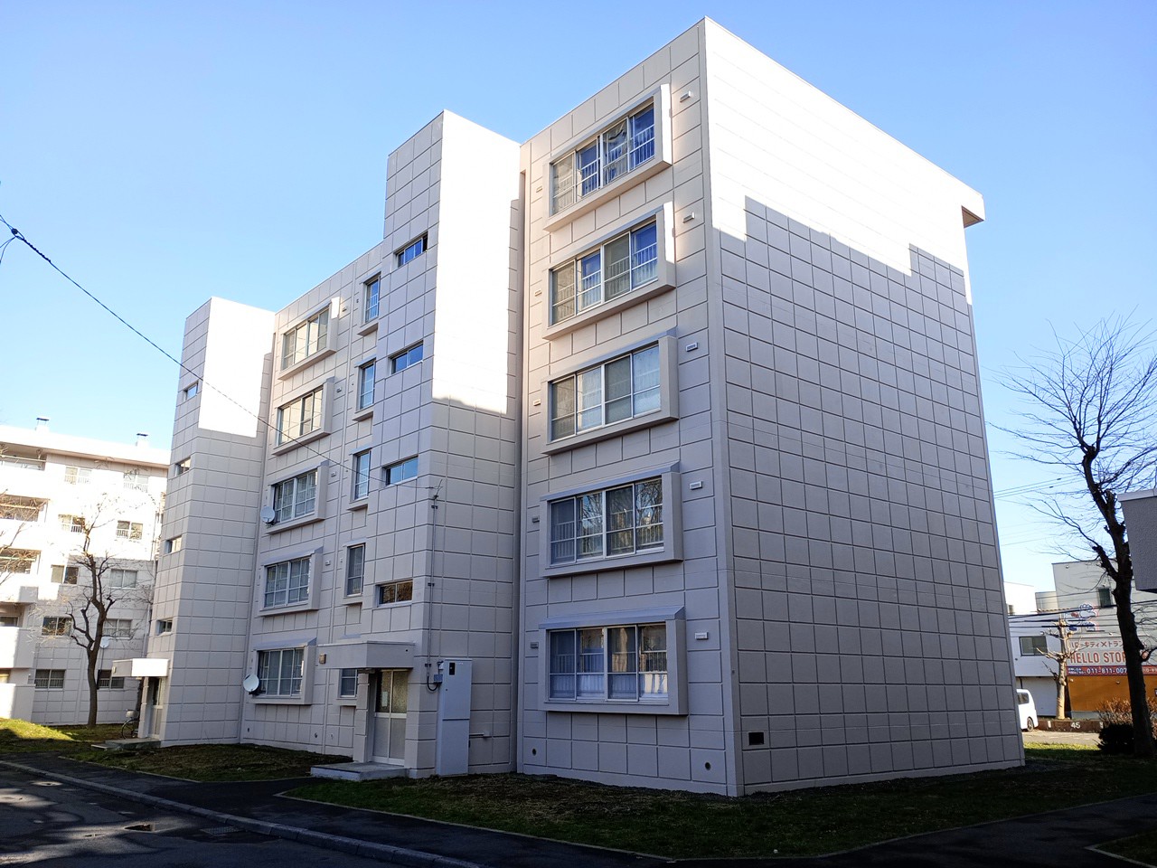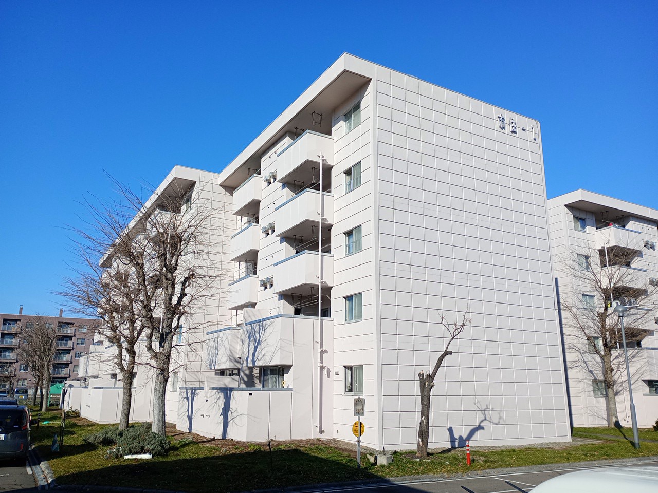 市営住宅苗穂団地1~4号棟・集会所外部改修工事 CATEGORIES令和7年, 官庁工事概要発注者:札幌市 工期:R7/3~R7/12 概要:屋上・バルコニー床の防水改修、換気口等の耐久性向上を図る外部改修工事